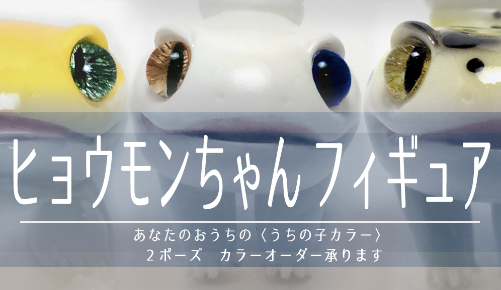 お待たせしました。 あなたのおうちのヒョウモンちゃんをモデルに、 世界に一つだけ。 あなただけのヒョウモンちゃんフィギュア。 カラーオーダー承ります!